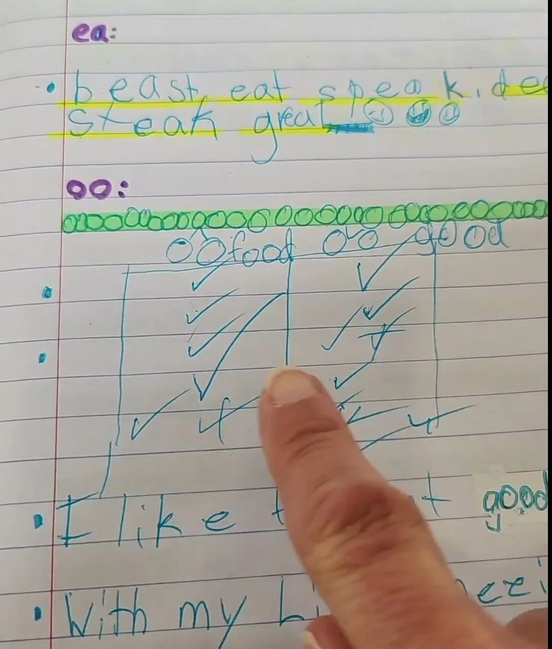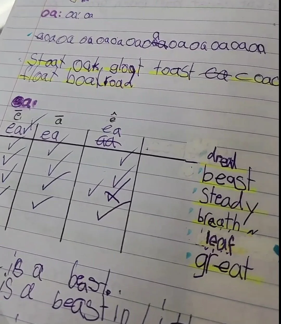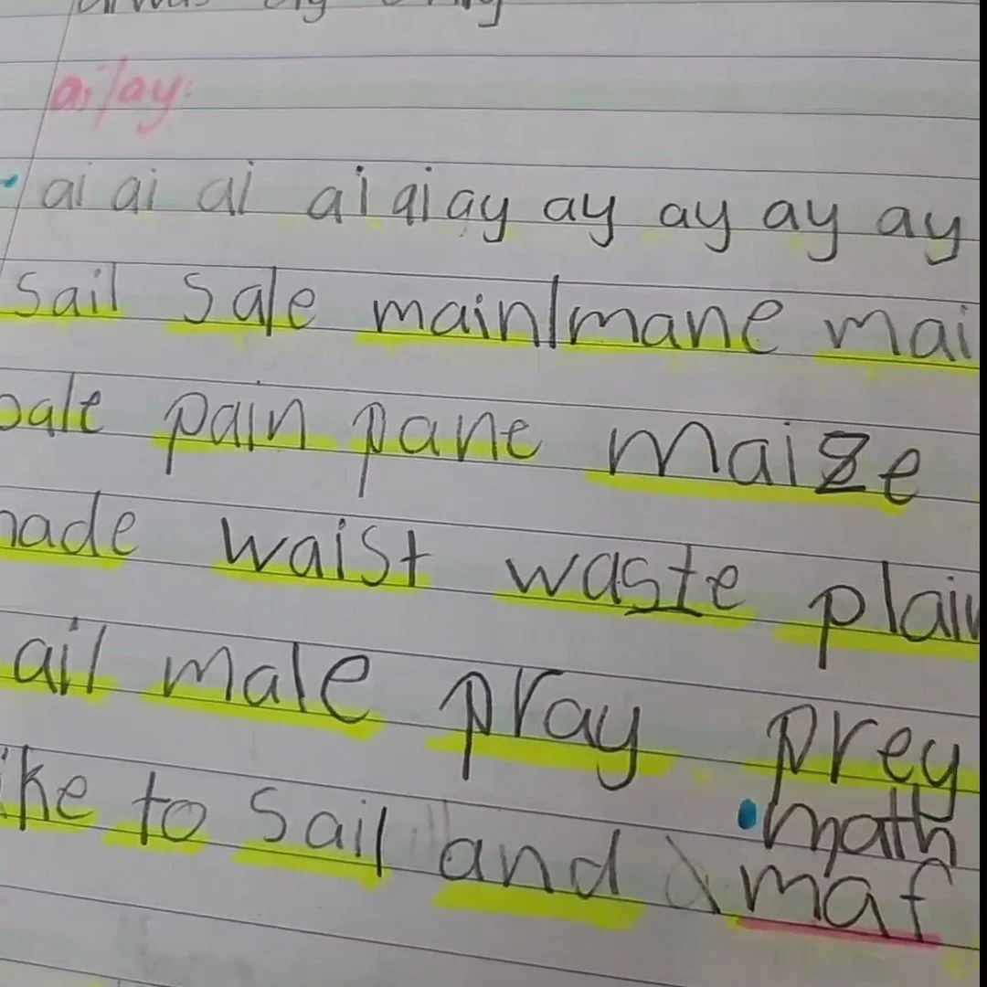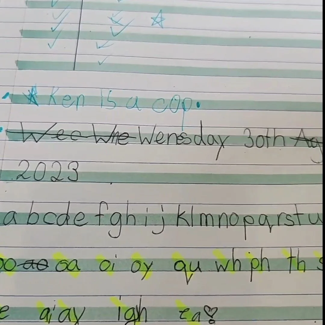 So, what does it look like in action? Recently, I noticed a student I had been working with for a long time suddenly experienced a decline in her writing and spelling abilities. She typically had neat and tidy handwriting and coped well with the introduction of new sounds and their spelling correspondences, making good progress. You can see this in the image below: