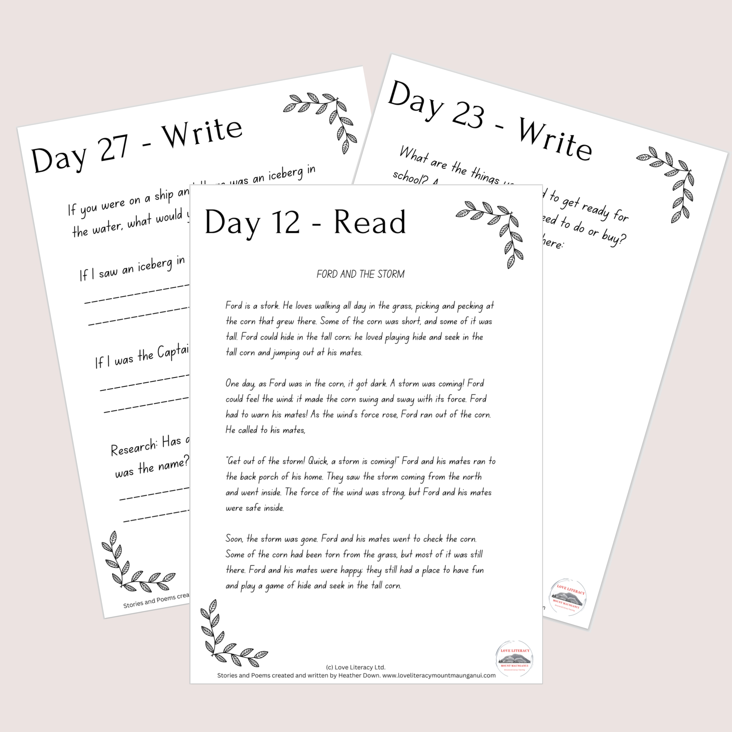 Resources Categories: All Morphology Bundle Bundles Vocabulary Cards Holiday Activities Posters Decodable Text Poems Writing Templates Games Resources All Morphology Bundle Bundles Vocabulary Cards Holiday Activities Posters Decodable Text Poems Writing Templates Games The Fox Who Knew His Name $8.00 Unlocking the -Cept- Root (Years 5–8) $0.00 The Power of bene- : Unlocking Complex Vocabulary (Years 5–6) $0.00 The Power of Analysis: Unlocking Complex Vocabulary (Years 5–6) $0.00 6-Sided Sentence Conjunction Dice $0.00 Four Seasons In One Day – suffix y text $0.00 Christmas Trivia Quiz – three types $0.00 Digraph ‘sh’ bundle $4.50 History Of The Sauna – an authentic text $0.00 Time to Work, Time to Chit Chat Graphics $0.00 Portal Discovered in Mount Maunganui – ‘port’ base word text $0.00 Zap Flowers Vs The Cyborgs - a soft ce, ci, cy text $0.00 Zap Flowers – Teenage Agent! A soft ge, gi, gy text $0.00 The Spotless House – a suffix ‘less’ text $0.00 Soundpack Sounds and Spellings $0.00 Whiskers The Unruly Cat – a prefix ‘un’ text $0.00 Jim’s Forgetful Day – a suffix ‘ful’ text $0.00 Bumble Bees – An authentic text $0.00 Superhero vs Supervillain! – a reading passage with prefix ‘super’ $0.00 Blank Vocabulary Cards $2.00 Essential Soundpack $29.00 The Lakeside Bach - a 'consonant le' poem $0.00 Coffee and Muffins - a 'rabbit words' reading passage $0.00 Writing Checklist $0.00 Sue and Prue - 'ue' reading passage $0.00 30 Days of Reading and Writing - Ages 10 - 14 $9.95 30 Days of Reading and Writing - Ages 5 - 9 $9.95 The Huge Wave - 'ge' reading passage $0.00 Customisable Alphabet Strips: Sky, Grass, Dirt $0.00 Barry's Constipation Conundrum - 'ion' reading passage $0.00 Final c, k or ck poster $0.00 Ford and the Storm - 'or' reading passage $0.00 Riding at Skyline - soft ce reading passage $0.00 Initial c or k poster $0.00 Ken and Kim - initial c and k reading passage $0.00 Writing Activity Ideas - Soot and Mooch $0.00 Soot and Mooch - oo/oo reading passage $0.00 The Feather Hunt - ea, ea, ea, reading passage $0.00 Writing Activity Ideas - The Feather Hunt $0.00 Writing Activity Ideas - The Lucky Coin $0.00 Writing Activity Ideas - Spike The Snail $0.00 The Lucky Coin - diphthong oi reading passage $0.00 Spike The Snail - long a /ai/ reading passage $0.00 Coastal Roads - long o /oa/ reading passage $0.00 Decodable Poetry Book - A Poetry Picnic of Wonderful Words created and written by Heather Down Sale Price: $10.00 Original Price: $20.00 Sale Spring Time - triple blends and trigraphs reading passage $0.00 The Beach- floss spelling pattern with initial blends and digraphs $0.00 Beyblades - doubling pattern with suffix 'ing' decodable passage $0.00 At the lake - ck or k decodable passage $0.00 Free Decodable Poem Book $0.00 Easter Treats Poem $0.00 Tic Tac Toe Game - soft c and g vocabulary $0.00 Basic Sentence Types Worksheet - Digraphs and Blends $0.00 Basic Sentence Types Worksheet $0.00 Soft c and g game (ce and ge) $0.00 Double the Consonant Game $3.50
